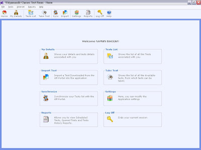 Test Room is a software that is used by VMC students to take tests at home. It is a good innovation made by Vidyamandir Classes. It can be used even without an internet connection at home. It makes taking tests much easier and hassle-free. The test is supposed to be attempted in a single sitting and can’t be paused. It also has an auto-save feature to combat power failures. This is what the main menu looks like.