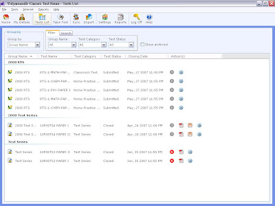 The sync button is a good way to update your test list and submit completed tests. In case you don’t have internet access at home, you may download the test files from VM Portal and import the tests into Test Room (transfer the files to your computer via any storage media). After completing the tests you can export the answer files and store them in a storage media, preferably a floppy or pen drive as the files are just about 2KB in size. You can then upload your answer files on VM Portal before the test closes. It’s much simpler if you have internet access. I’m going to show you what the tests list looks like. This is my list as on May 27. It has become even more crowded after the 5 tests last week. In such situation there’s an option to archive tests. Archived tests can be viewed but they don’t appear on the main Test List.